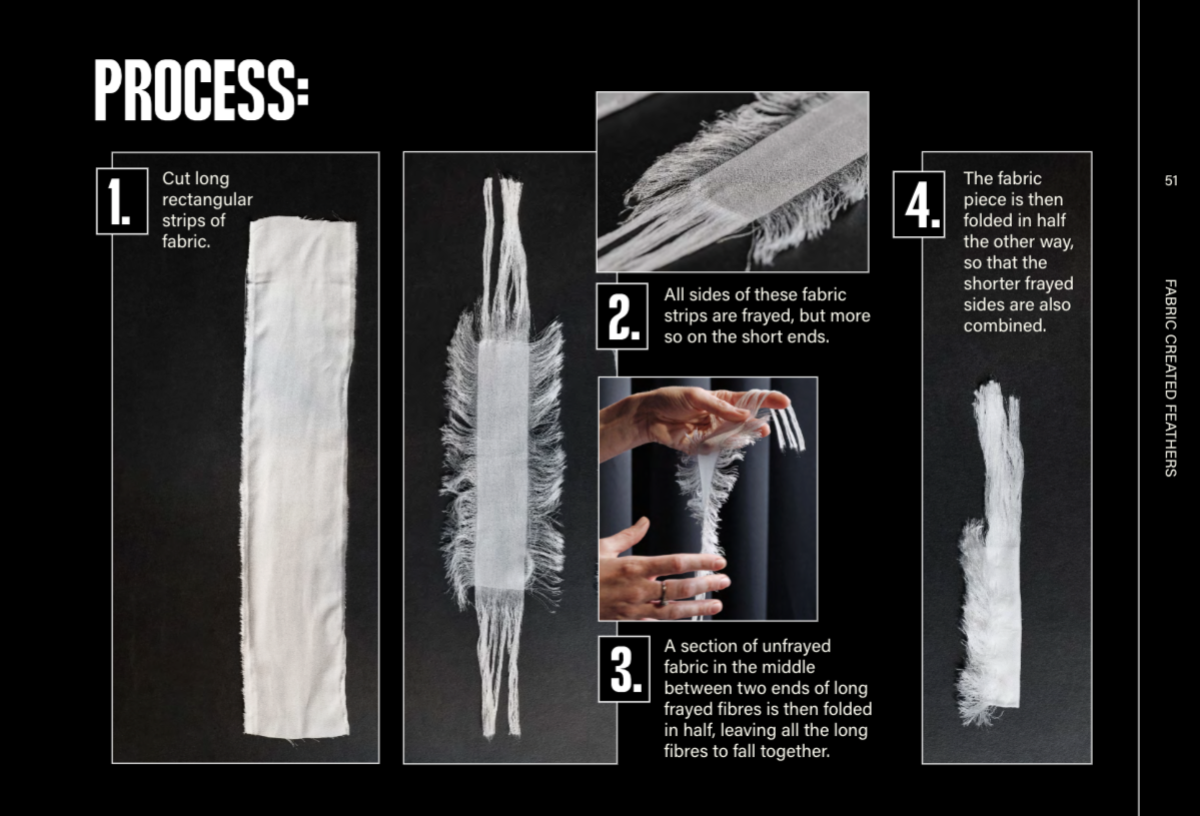Step-by-step guides through different fabric manipulation techniques that can be used to replicate the aesthetic qualities of feathers