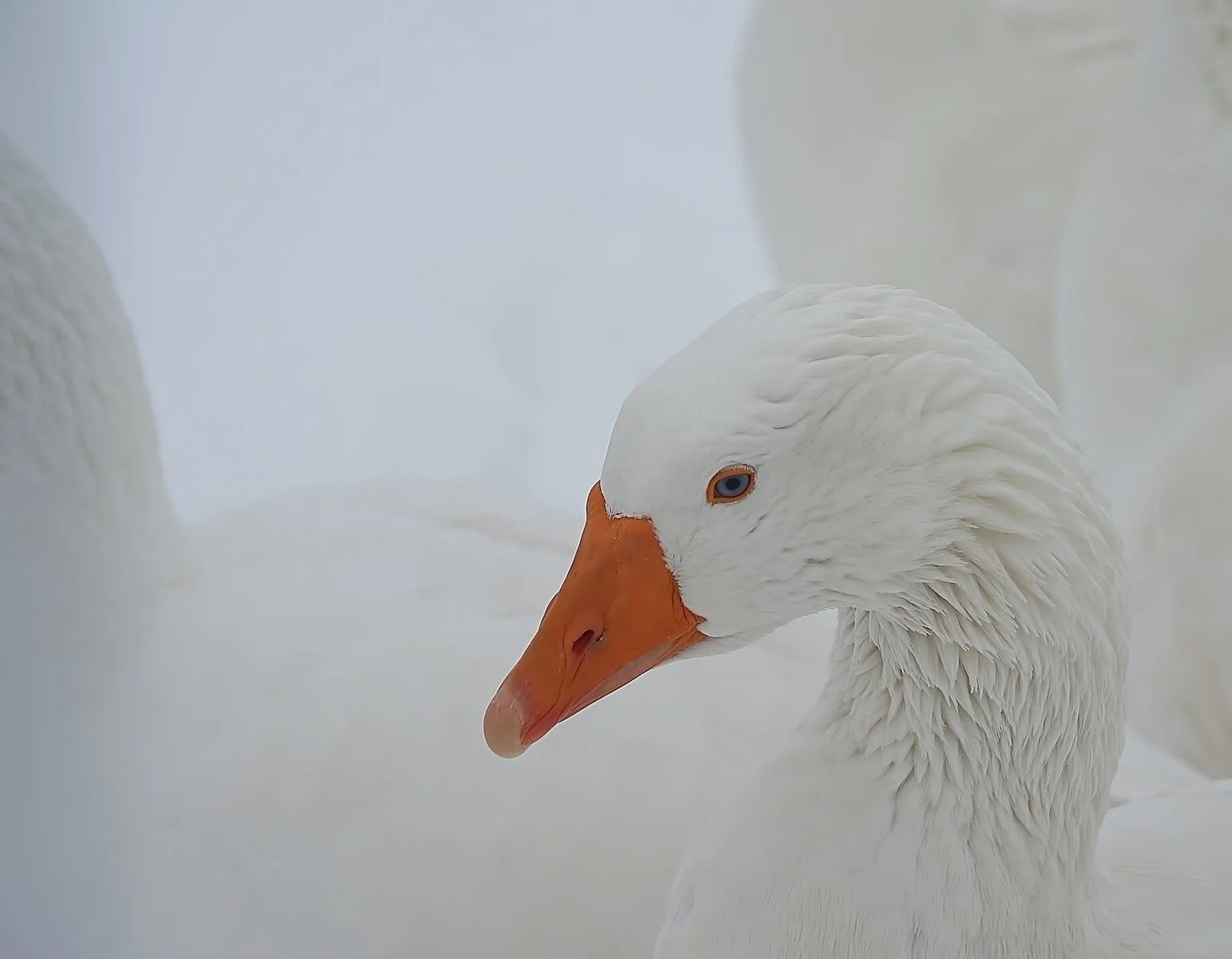 The two bird species who suffer and are eventually slaughtered for down, these animals are sensitive and sentient. Geese choose one partner for life and mourn their partner’s death. Ducks bob their heads up and down when they’re happy, and love to socialise.