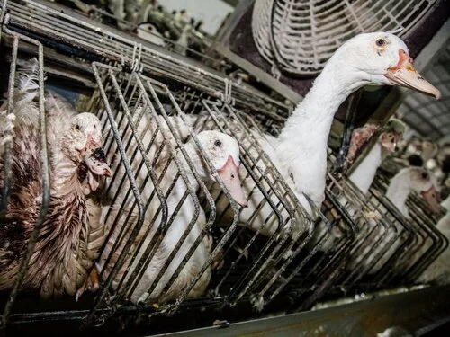 In foie gras production, birds have metal tubes shoved down their oesophagus as they are fed huge amounts of corn and fat. These poor birds are confined to small areas or cages. The purpose of this torturous treatment is to enlarge the birds’ livers, which are eaten as food considered a ‘delicacy’.