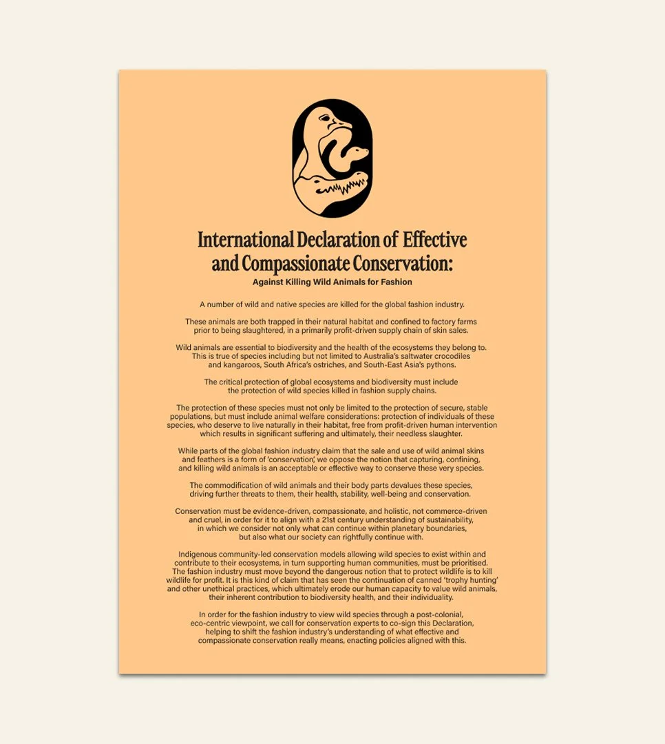 The International Declaration of Effective and Compassionate Conservation: Against Killing Wildlife for Fashion