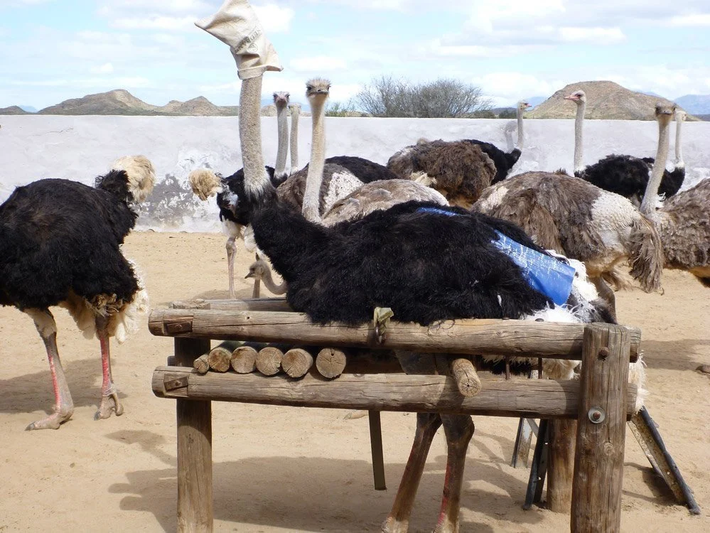 Despite this, ostriches are confined to controlled farms and feedlots for fashion.