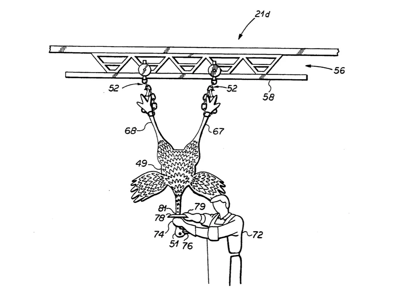 Other birds watch on as distressed birds have a bag placed over their head, are confined, killed and butchered.